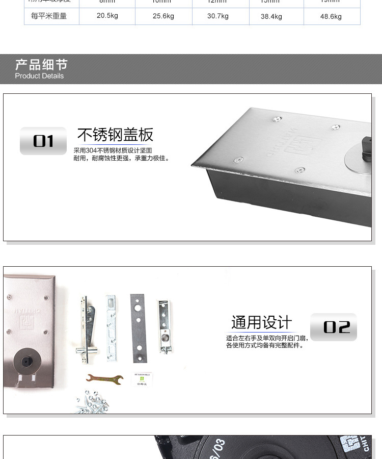 从生产的视角来看,地弹簧的蜗轮蜗杆结构使弹簧压缩比齿条和小齿轮驱动门的压缩力更小,并且地弹簧关闭门的力臂也更短,因此质量地弹簧的使用寿命取决结构设计和加工精度较高的性能。此外,由于双向门板沿门板平面对地弹簧强加很大的力,因此低档地弹簧的使用寿命会与高档地弹簧有很大的不同。