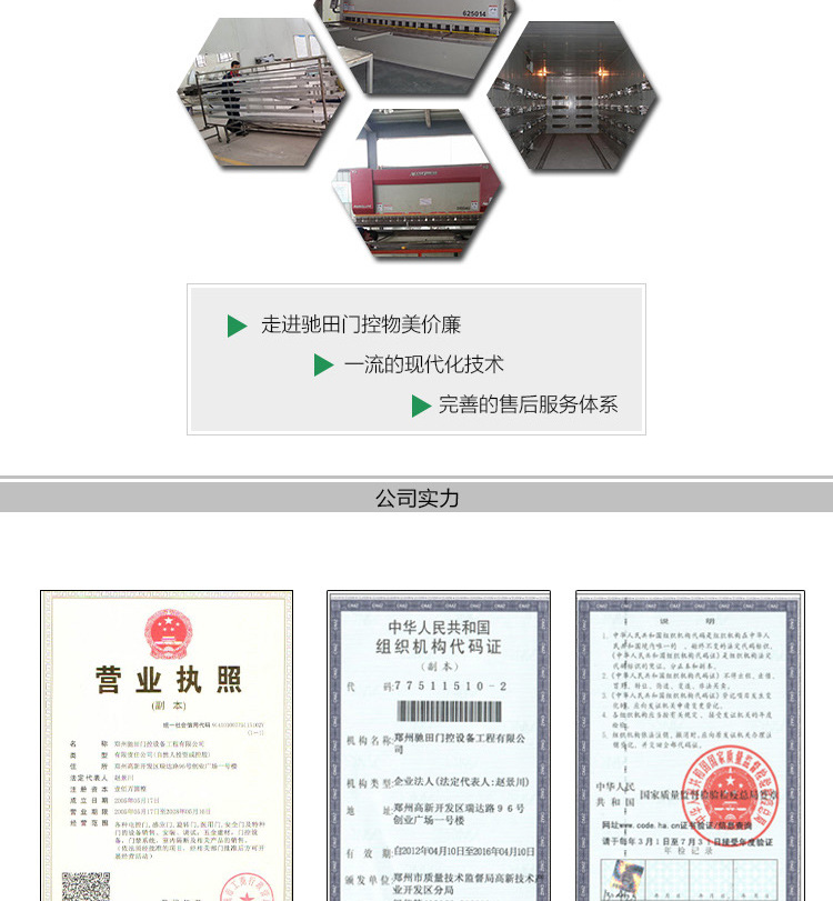 郑州驰田门控设备工程有限公司成立于2005年5月17日。它是一家高科技民营企业,其全方位的自动门集研发,设计,制造,销售,建造和维护服务于一体。它注重于用以建筑入口和出口的智能管理系统。赞成工程和技术服务业务,秉承伟盛门控总公司的企业文化和服务理念。